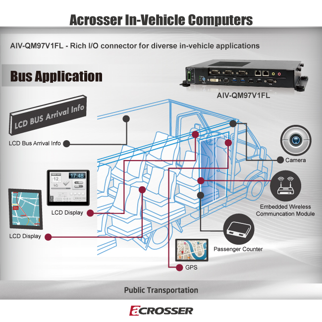 Headquartered in New Taipei City, Taiwan, with four (4) offices in China and one (1) in the USA in Cypress, California, Acrosser is a leading manufacturer of a wide range of COTS (commercial-off-the shelf) hardware technology products: all-in-one HMI industrial panel PCs, monitors, and embedded computers; single board computers (SBC), ruggedized in-vehicle computers with internal CANbus, and network appliances.